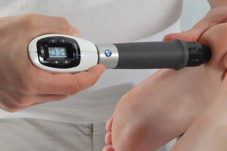 Terapia focada no alívio de dor, tratamento de lesões tendineas e musculares. Ideal para patologias como: Fascite plantar, epicondilite lateral, dores no ombro, dores lombares entre outras.